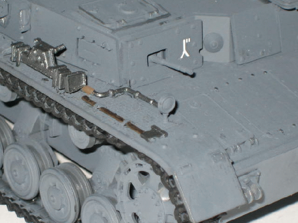 längere Ketten sowie Zusatzpanzerung (30 mm Front, 20 mm Seite) in Form von angenieteten Platten.