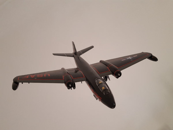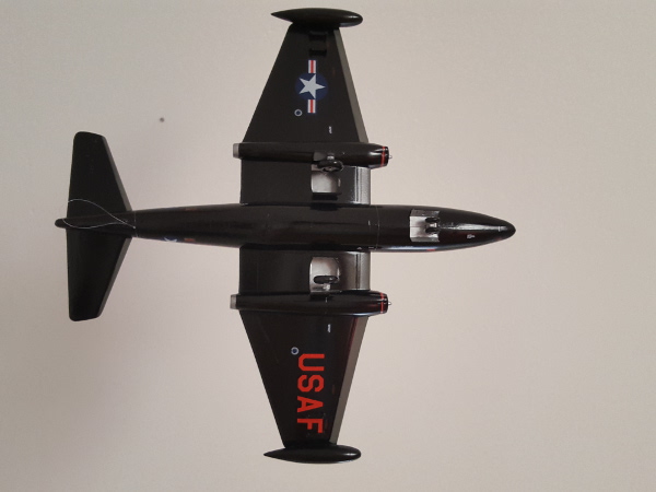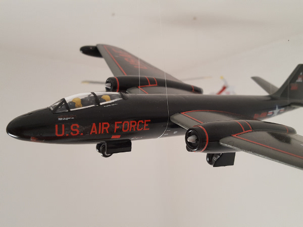 (1:72 von Revell) Basierend auf der britischen Canberra B.2. spielte die B-57 eine besondere Rolle innerhalb der USAF. Die erste B-57B hatte am 28. Juni 1954 ihren Erstflug und war für Tiefflugeinsätze unter allen Wetterbedingungen bei Tag und Nacht geeignet. 1965 wurden 2 Geschwader nach Vietnam verlegt, wo sie bis zum 15. Oktober 1969 eine unverzichtbare Waffe bei der Bodenunterstützung und bei Nachteinsätzen waren. Eine einzelne B-57B konnte die gleiche Waffenlast tragen wie vier F-4 Phantom. Historischer Revell-Modellbausatz - Einteiliges Cockpit mit 2 Pilotenfiguren
