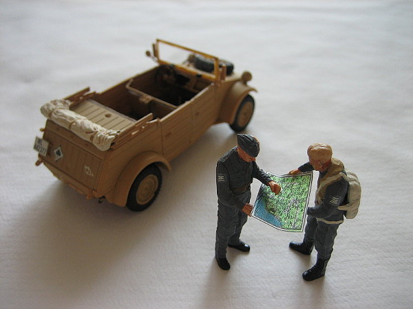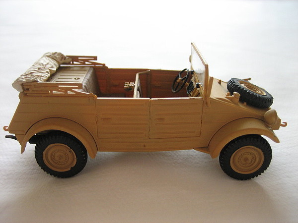 Dr. Ferdinand Porsche begann mit der Entwicklung des Volkswagens unter Adolf Hitlers gleichnahmigen Projekt als sich bereits der Zweite Weltkrieg abzeichnete. Mit der sich verstärkenden Forderung nach einem Militärfahrzeug, wurde der Volkswagen bald zum Pkw.K1 Kübelwagen Typ 82 umgebaut, wobei der erste Prototyp im November 1938 fertiggestellt war.